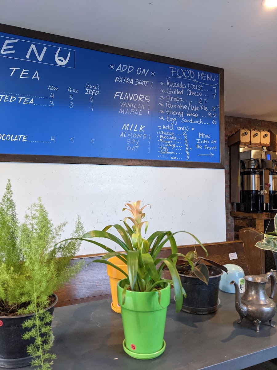The coffee menu features classic essentials including espresso, latte, cortado, and a 16 oz iced Americano, all made with care to complement the cozy, plant-filled space. Whether you prefer a smooth drip coffee or a rich mocha, these drinks are designed to keep you comfortably energized while working or unwinding.